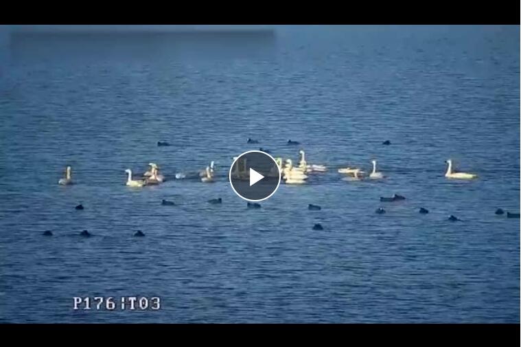 大河網(wǎng)訊 2月17日早上7時(shí),汝州市幸福渠管理所的監(jiān)測設(shè)備捕捉到了一段白天鵝在河水里自由嬉戲的畫面:波光粼粼的水面上,24只白天鵝在自由自在地追逐嬉戲,淺紅的晨曦,給天鵝優(yōu)美的身姿鍍上了一層夢幻般的金色,白中帶金的迷人色彩與藍(lán)瑩瑩的河水、成群的黑褐色的野鴨子,形成了鮮明的對比,畫面唯美。