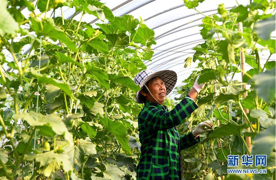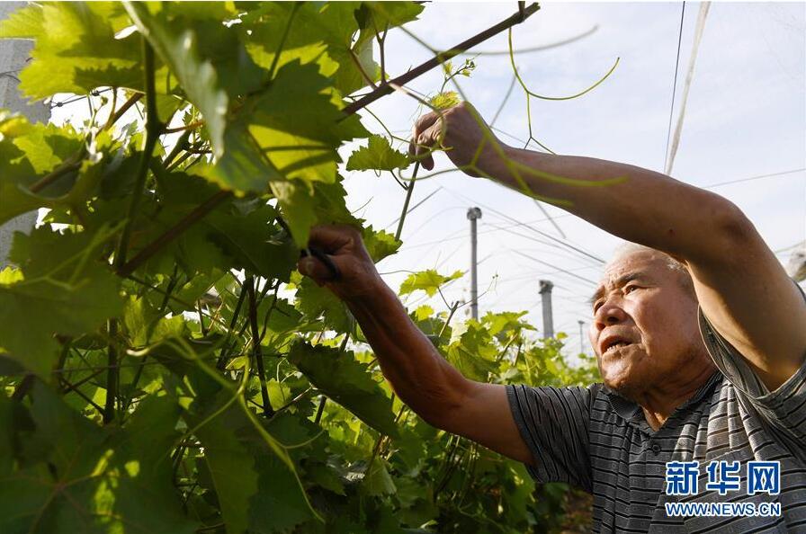 5月28日,在南陽市宛城區(qū)瓦店鎮(zhèn)梁莊村大山農業(yè)科技園,村民在修剪葡萄枝。 近年來,河南省南陽市宛城區(qū)依托當?shù)剞r業(yè)資源優(yōu)勢,在全區(qū)8個鄉(xiāng)鎮(zhèn)建設18個農業(yè)產業(yè)扶貧基地,采用“農業(yè)龍頭企業(yè)+產業(yè)基地+技術培訓+貧困戶”的帶貧模式,通過土地流轉、資金入股、勞務增收等形式帶動1172戶貧困戶增收致富。 新華社記者 郝源 攝