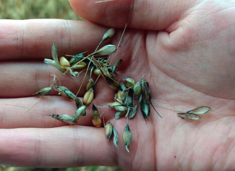 29日當(dāng)天,洛陽多地再次降雨。頂端新聞記者在洛陽部分縣區(qū)走訪時(shí)發(fā)現(xiàn),不少麥地整體呈現(xiàn)黃色的麥稈上還帶有些許黃綠色的葉片;麥穗上存在發(fā)黑的情況;用手搓開麥穗,存在部分麥子發(fā)芽的情況。