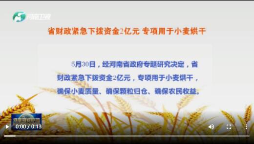 5月30日,經河南省政府專題研究決定,省財政緊急下撥資金2億元,專項用于小麥烘干,確保小麥質量、確保顆粒歸倉、確保農民收益。