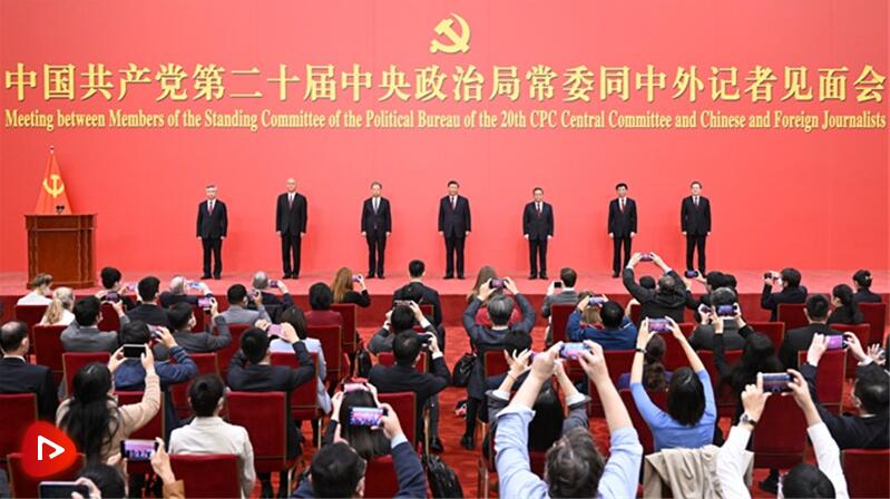 “我們一定牢記黨的性質(zhì)和宗旨,牢記自己的使命和責(zé)任,恪盡職守、勤勉工作,決不辜負(fù)黨和人民重托。”23日中午,在中國共產(chǎn)黨第二十屆中央委員會(huì)第一次全體會(huì)議上當(dāng)選為中共中央總書記的習(xí)近平,率領(lǐng)新一屆中央政治局常委在人民大會(huì)堂同采訪黨的二十大的中外記者親切見面。習(xí)近平總書記發(fā)表重要講話時(shí)強(qiáng)調(diào):“藍(lán)圖已經(jīng)繪就,號(hào)角已經(jīng)吹響。我們要踔厲奮發(fā)、勇毅前行,努力創(chuàng)造更加燦爛的明天。”