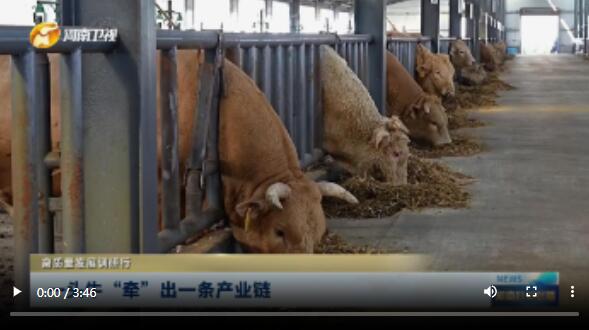駐馬店泌陽縣夏南?萍奸_發(fā)公司總經(jīng)理 祁興磊:這頭牛可是我們目前種牛中間最大的一頭牛,它身高有1米7,體長(zhǎng)有2米09,是我們的牛王。如果說種子是農(nóng)業(yè)的芯片,那么肉牛品種就是肉牛產(chǎn)業(yè)的“芯片”。
