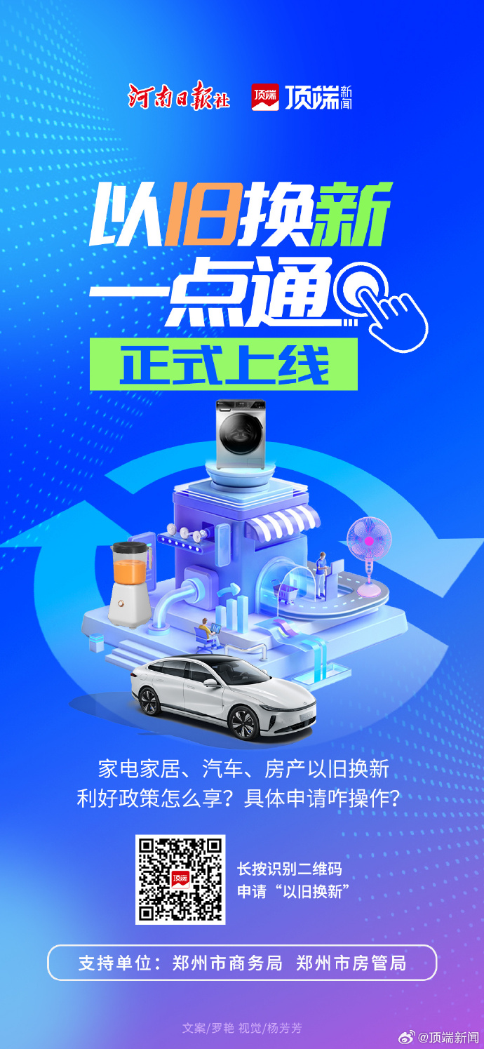 為助力河南以舊換新,在鄭州市商務(wù)局、鄭州市房管局的支持下,頂端新聞推出#以舊換新一點(diǎn)通# ,于9月21日正式上線,集成家電家居、汽車、房產(chǎn)以舊換新的申請、問策、答疑、互動等服務(wù),讓你換新更省心。