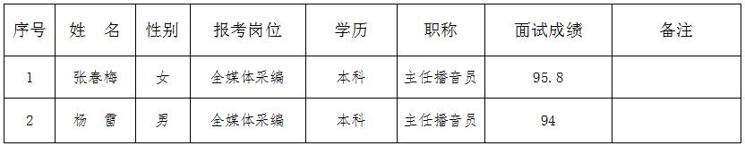 根據(jù)《周口市事業(yè)單位引進優(yōu)秀青年人才實施辦法(試行)》精神,經(jīng)過報名、資格審查和面試等環(huán)節(jié),確定以下2名同志進入體檢,現(xiàn)予以公示。