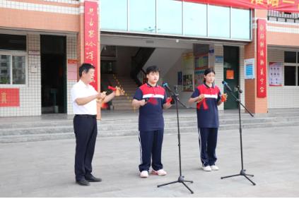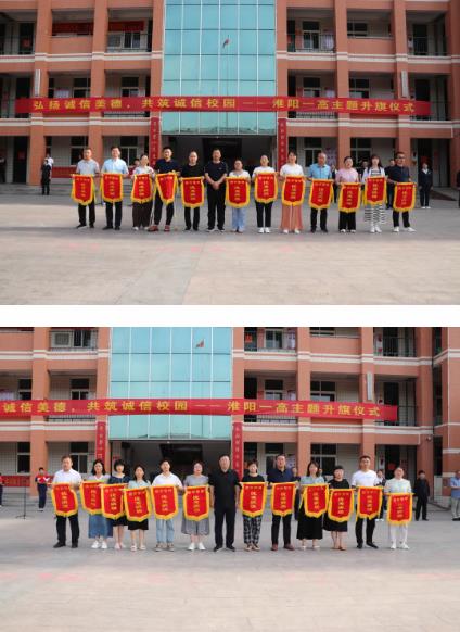 淮陽(yáng)一高黨總支書(shū)記高鵬、校長(zhǎng)時(shí)翔宇分別為教學(xué)管理先進(jìn)班級(jí)和德育管理優(yōu)秀班級(jí)頒發(fā)錦旗。