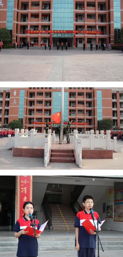 沐浴著朝陽(yáng),全體師生莊嚴(yán)肅立。升國(guó)旗,唱國(guó)歌,國(guó)旗迎風(fēng)飄揚(yáng),國(guó)歌字句鏗鏘,彰顯出青少年對(duì)祖國(guó)的無(wú)限熱情。