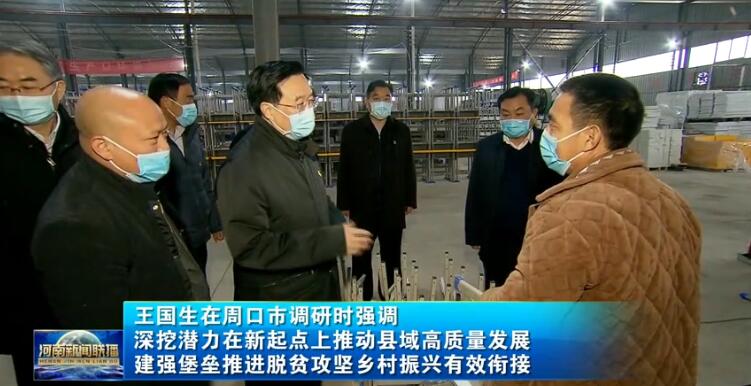 11月30日至12月1日,省委書記王國(guó)生到周口市項(xiàng)城市、沈丘縣、鄲城縣、太康縣,宣講黨的十九屆五中全會(huì)精神,調(diào)研脫貧攻堅(jiān)、村“兩委”換屆、縣域經(jīng)濟(jì)等工作,就“十四五”規(guī)劃編制征求意見建議。